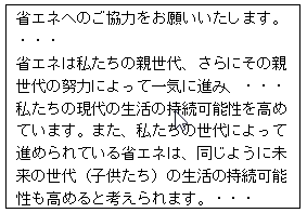 世代間支援を伝えることで、電力消費量を削減できるだけでなく、